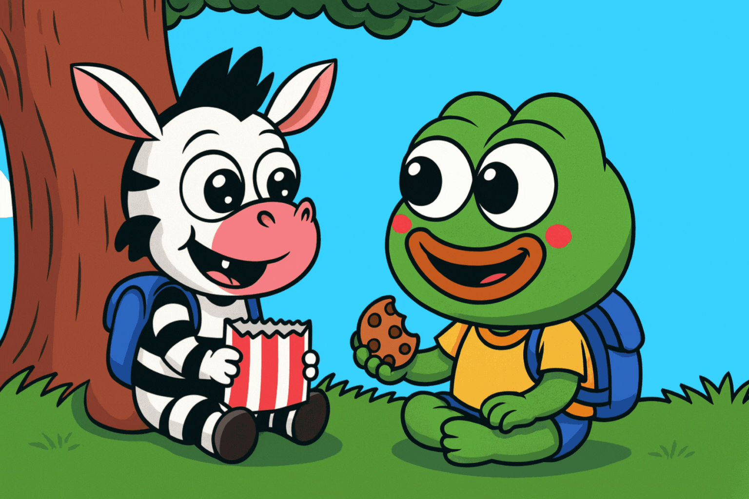 But times change… and so do frogs. One day, PEPE started to become popular. He had the jokes, the rizz, the AURA. Little ZEZE didn’t fit in anymore... his stripes became “barcodes” and he was known as the 'brokie'. The teasing turned into insults and soon the friendship faded...
